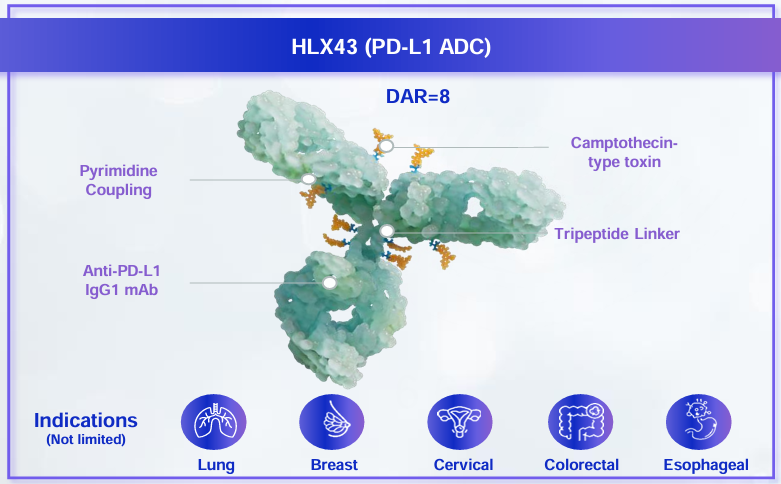HLX43是一款潜在同类最优的广谱抗肿瘤PD-L1 ADC,兼具免疫检查点阻断与载荷细胞毒性的双重作用机制。现在,HLX43在NSCLC等实体瘤中展现出“高效、低毒”的初步临床疗效。根据2025 WCLC更新数据发布,在鳞状NSCLC的后线治疗中,HLX43已展现出初步的临床优势,接受2mg/kg剂量HLX43治疗的患者客观缓解率(ORR)达40.0%,疾病控制率(DCR)为73.3%。此外,针对多西他赛治疗失败的三线及后线NSCLC患者,HLX43的ORR仍达到30.0%,DCR为80%。HLX07是DB视讯 自主开发的创新型抗EGFR的单抗,相比西妥昔单抗该产品具备更低的免疫原性和更好的靶点亲和力。根据2025 WCLC最新数据发布,HLX07联合斯鲁利单抗及化疗在EGFR高表达sqNSCLC患者一线治疗中展现出显著的抗肿瘤活性和持久疗效,在中位随访18.6个月时实现了约70%的客观缓解率(ORR)和超过90%的疾病控制率(DCR),且在高剂量组的中位无进展生存期(PFS)达到17.4个月。因此,HLX43有望协同抗EGFR单抗HLX07,发挥出较HLX43单药及抗EGFR单抗联合化疗更高的治疗潜力,进一步提升鳞状NSCLC等晚期实体瘤患者的治疗获益。